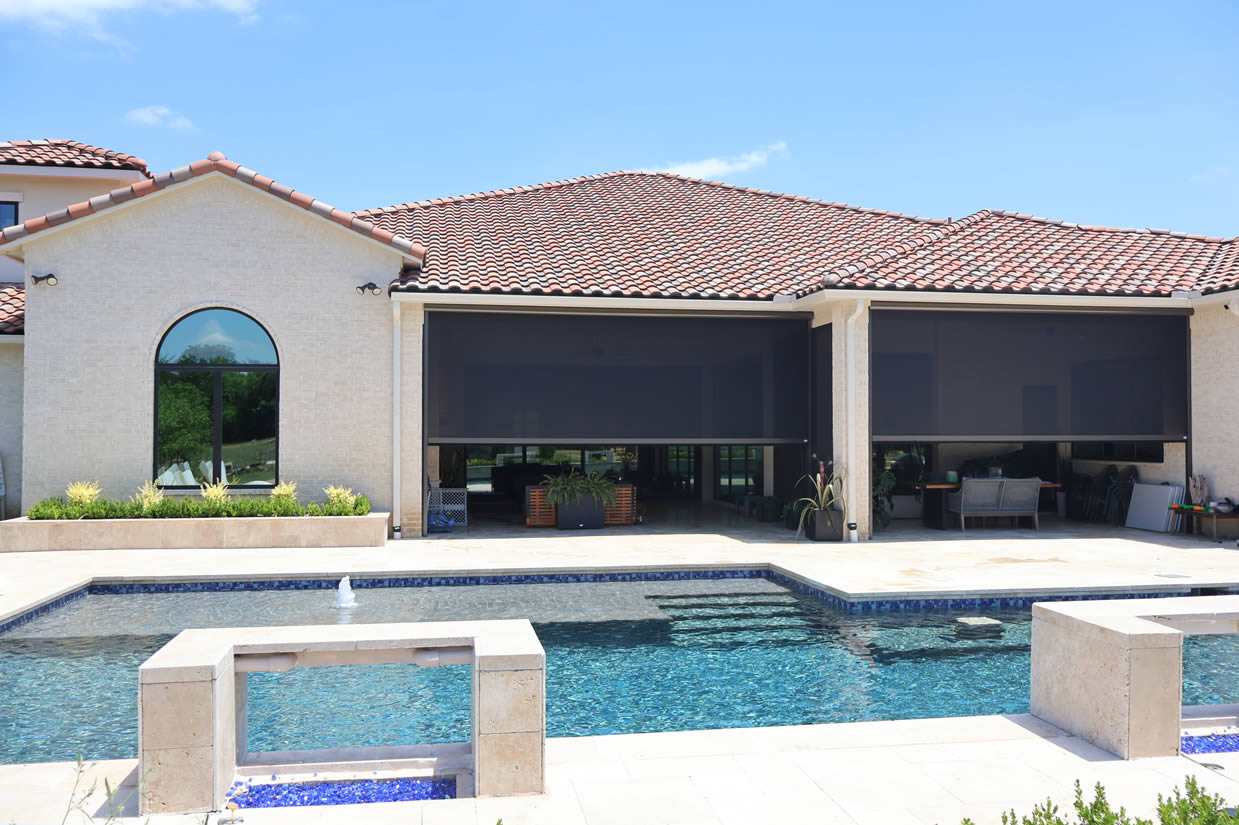 Motorized screens enclose and transform any outdoor space with the push of a button.